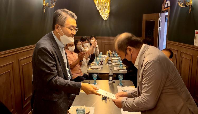 ¹Ú»óö ÃÑÀåÀº ÀÌ ÀÚ¸®¿¡¼ ÁýÇÊÀ§¿øµéÀÇ ±×°£ÀÇ ³ë·ÂÀ» Ä¡ÇÏÇÏ¸ç ¾ç½ÂÇÐ ´ÜÀå¿¡°Ô °Ý·Á±ÝÀ» Àü´ÞÇϰí È£³²´ëÇб³ ¸ðµç ÇаúÀÇ ±³¼öµéÀÌ »ê°üÇÐ Çù·Â¿¡ Àû±Ø³ª¼ ÁÙ °ÍÀ» ´çºÎÇß´Ù.