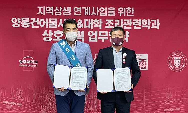 È£³²´ëÇб³ ¿Ü½ÄÁ¶¸®Çаú¿Í ¾çµ¿°Ç¾î¹°½ÃÀå »óÀÎȸ´Â Áö¿ª»ó»ýÀ» À§ÇØ À¯±âÀûÀÎ Çù·Âü°è ±¸ÃàÀ» ³ë·ÂÇÏ´ø Áß, ´ëÇбâ°üÀÇ ±³À° Çù·ÂÀÌ ½ÃÀåÀÇ ÀÚü »ýÁ¸´É·ÂÀ» ´õÇØÁÖ°í ´Ù¾çÇÑ È°µ¿ Áö¿ø¿¡ ´ëÇÑ ÀÚ¹®ÀÌ ½ÃÀå ¼ºÀå¿¡ ÇÊ¿äÇÑ °Í¿¡ ¼·Î °ø°¨ÇÏ¿© À̹ø Çù¾àÀ» ÃßÁøÇÏ°Ô µÆ´Ù.