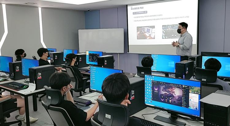ÇÏ·ç 4½Ã°£¾¿ ÁøÇàµÇ´Â ÇÁ·Î±×·¥¿¡¼´Â Áø·ÎŽ»öÀ» À§ÇÑ À̽ºÆ÷Ã÷»ê¾÷¿¡ ´ëÇÑ ÀÌÇØ¿Í °ü·Ã Á÷¹«¿¡ µû¸¥ Á÷¾÷±º¿¡ ´ëÇÑ ÀÌÇØ¸¦ ³ôÀÌ°í ½Ç¹«±³À°¿¡¼´Â °³Àκ° °ÔÀÌ¹Ö ¿ª·® °È¿Í ÇÔ²² ÆÀ Çù·ÂÀ» ÅëÇÑ °ÔÀÓ ¿î¿µ Àü·« Àû¿ë¿¡ ÁßÁ¡À» µÎ°í ¿î¿µ ÇÑ´Ù. À̽ºÆ÷Ã÷ Àü¹® ÄÚÄ¡¿Í e½ºÆ÷Ã÷»ê¾÷Çаú ÀçÇлýÀÌ ¸àÅä·Î Âü¿©ÇÏ¿© ½ºÅ©¸²À» º´ÇàÇÑ °ÔÀÌ¹Ö ¼ö¾÷À» ÁøÇàÇÏ¸ç Æ¯È÷, °³ÀÎ ¿ª·®ºÐ¼®À» ±â¹ÝÀ¸·Î ÆÀ ´ÜÀ§ ¿î¿µÀü·«À» Á¦½ÃÇϸç Â÷º°ÈµÈ ±³À° ÇÁ·Î±×·¥À» ¼öÇàÇϰí ÀÖ´Ù. °³° ù³¯¿¡´Â À̽ºÆ÷Ã÷ »ê¾÷»ýÅÂ°è ±¸Á¶¿¡ µû¸¥ Á÷¾÷¿¡ ´ëÇÑ ÀÌÇØ¸¦ ÁÖÁ¦·Î e½ºÆ÷Ã÷»ê¾÷Çаú Â÷Àç°ü ±³¼öÀÇ Æ¯°ÀÌ ÁøÇàµÇ¾ú´Ù.