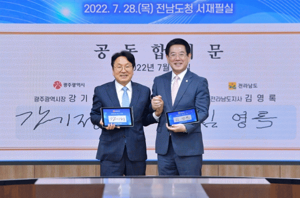 °±âÁ¤ ±¤ÁÖ½ÃÀåÀº ¡°±¤ÁÖ¿Í Àü³²Àº ÇϳªÀÇ °øµ¿¿î¸íü·Î »ó»ýÀÇ ÇÙ½ÉÀº ÀÌÀÍÀ» ¼·Î °øÀ¯ÇÏ´Â °ÍÀÌ´Ù¡±¸ç ¡°±×µ¿¾È ÇØ°áÇÏÁö ¸øÇÑ Çö¾È»ç¾÷Àº Áö¼ÓÀûÀÎ ³íÀǸ¦ ÅëÇØ ÇØ°á¹æ¾ÈÀ» Á¦½ÃÇÏ°í ¡®±¤ÁÖ¡¤Àü³² ¹ÝµµÃ¼ ƯȴÜÁö Á¶¼º¡¯°ú °°Àº Ãʱ¤¿ªÇù·Â»ç¾÷ ÃßÁøÀ» ÅëÇØ ¼öµµ±Ç ÁýÁß°ú Áö¹æ¼Ò¸ê¿¡ ´ëÀÀÇÏ´Â ±¤ÁÖÀü³²ÀÇ »õ·Î¿î ½Ã´ë¸¦ ¿¾î°¡µµ·Ï Çϰڴ١±°í ¸»Çß´Ù.