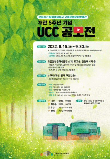 °íÈïºÐû¹®È¹Ú¹°°ü ¼Ò°³, ·Î°í¼Û, ÀÀ¿ø¸Þ½ÃÁö¸¦ ÁÖÁ¦·Î ±âȹµÈ °ø¸ðÀüÀº °íÈï ºÐû»ç±â ¹®È¿¹¼ú Ư±¸·Î ÁöÁ¤µÈ ºÐû¹®È¹Ú¹°°üÀ» Àü±¹ÀûÀ¸·Î ¾Ë¸®°í È«º¸Çϱâ À§ÇÑ ¿µ»ó ÄÜÅÙÃ÷¸¦ ¹ß±¼Çϱâ À§ÇÏ¿© ¸¶·ÃµÆ´Ù.