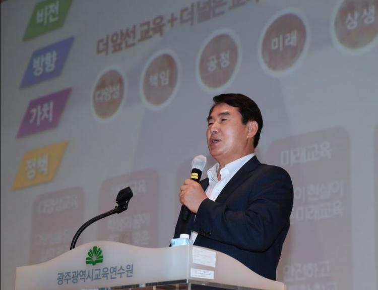 ÀÌ ±³À°°¨Àº ¸ÕÀú »õ·Î¿î ±¤ÁÖ±³À° ºñÀüÀÎ ¡®Çõ½ÅÀû Æ÷¿ë±³À°¡¯¿¡ ´ã±ä Àǹ̸¦ ¼³¸íÇϰí, À̸¦ µÞ¹ÞħÇÏ´Â °¡Ä¡¿Í ÁÖ¿ä Á¤Ã¥ ¹æÇâÀ» ¾È³»Çß´Ù. ƯÈ÷ 5´ë ÁÖ¿ä Á¤Ã¥ ¹æÇâÀ¸·Î´Â ¡ã´Ù¾ç¼º±³À° ¡ãÃ¥ÀÓ±³À° ¡ã°øÁ¤±³À° ¡ã¹Ì·¡±³À° ¡ã»ó»ý±³À°À» Á¦½ÃÇß´Ù.