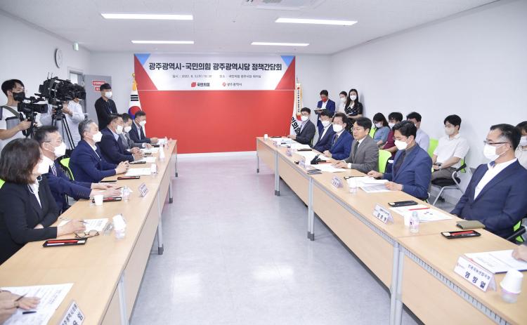 À̳¯ °£´ãȸ´Â ÀÌ·ÊÀûÀ¸·Î °±âÁ¤ ±¤ÁÖ±¤¿ª½ÃÀå, ÇàÁ¤ºÎ½ÃÀå‧¹®È°æÁ¦ºÎ½ÃÀåÀ» ºñ·ÔÇÑ ±¤Áֽà ÁÖ¿ä °£ºÎ°¡ ±¹¹ÎÀÇÈû ±¤ÁֽôçÀ» Á÷Á¢ ¹æ¹®ÇØ ÁøÇàÇß´Ù. ±¤ÁÖ±¤¿ª½ÃÀåÀÌ ±¹¹ÎÀÇÈû ½Ã´çÀ» ¹æ¹®ÇØ Á¤Ã¥°£´ãȸ¸¦ °³ÃÖÇÑ °ÍÀº À̹øÀÌ Ã³À½ÀÌ´Ù. ±¹¹ÎÀÇÈû¿¡¼´Â ±èÁ¤Çö ±¤ÁֽôçÀ§¿øÀå, Áö¿ª±¸º° ´çÇùÀ§¿øÀå, ±è¿ëÀÓ ½ÃÀÇ¿ø, ¹ÚÁ¾Ã¶ ½Ã´ç »ç¹«Ã³Àå µîÀÌ Âü¼®Çß´Ù.