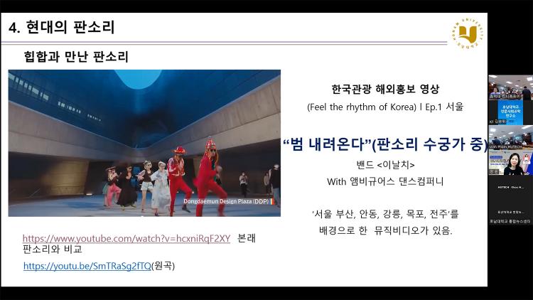 À±¿µ ±³¼ö´Â À̳¯ ¼ö¾÷¿¡¼ ÆÇ¼Ò¸®ÀÇ ÀÇ¹Ì¿Í Æ¯Â¡, ÆÇ¼Ò¸®ÀÇ ±¸¼º ¿ä¼Ò, ÈüÇÕ°ú ÆÇ¼Ò¸®, ÆÇ¼Ò¸® ¹è¿ì±â µîÀ» ÁøÇàÇß´Ù. ƯÈ÷ ´ëÇ¥ÀûÀÎ ÆÇ¼Ò¸® ÃáÇâ°¡ Áß ¡®»ç¶û°¡¡¯¸¦ Á÷Á¢ ÇлýµéÀÌ ¹è¿öº¼ ¼ö ÀÖµµ·Ï ÇßÀ¸¸ç »ç¶û°¡¸¦ ¿Ü±¹ÀÎ ÇлýÀÌ °³ÀÛÇÑ ¿µ»óµµ º¸¿©ÁÖ¸é¼ ÇлýµéÀÇ Èï¹Ì¸¦ ³ô¿´´Ù. ¶ÇÇÑ º£Æ®³²¿¡µµ Çѱ¹ÀÇ ÆÇ¼Ò¸®¿Í À¯»çÇÑ ÀüÅëÀ½¾ÇÀÌ ÀÖ´ÂÁö¸¦ ¹¯°í ³ª´©¸é¼ »óÈ£¹®È¿¡ ´ëÇÑ ÀÌÇØ¸¦ ³ô¿´´Ù.