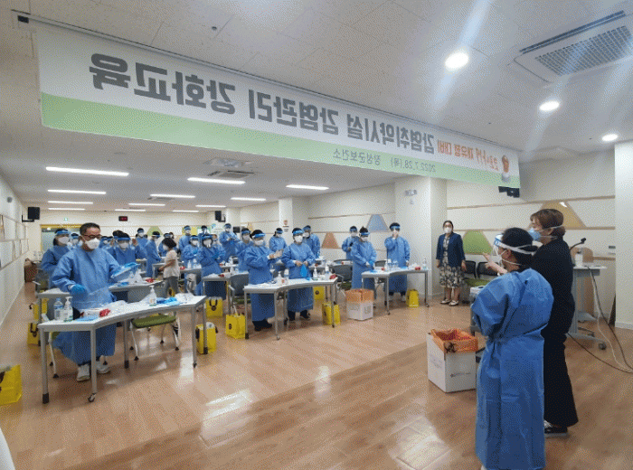 °¨¿°°ü¸®¸¦ ´ã´çÇÏ´Â ÃÖÀϼ± ½Ç¹«ÀÚµéÀÇ ´ëÀÀ ´É·Â Çâ»ó¿¡ ÃÊÁ¡À» ¸ÂÃß¾î ÀǽÉ.È®Áø ȯÀÚ ¹ß»ý ½Ã ´ëÀÀ ¿ä·É µî ±âº» ±³À°°ú ÇÔ²² Á÷Á¢ °³Àκ¸È£±¸¸¦ Âø.Å»ÀÇÇÏ¸ç ½Ç½À ±³À°µµ ÇÔ²² ÁøÇàÇß´Ù.
