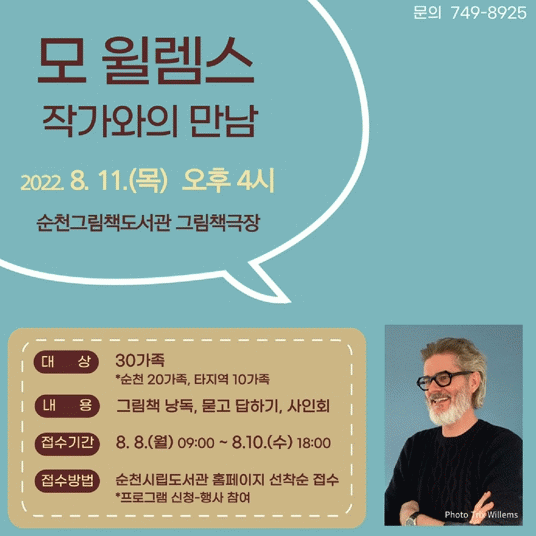 '¸ð Àª·½½º ÀÛ°¡¿ÍÀÇ ¸¸³²' Âü¿© Á¢¼ö´Â 8ÀϺÎÅÍ 10ÀϱîÁö ¼øÃµ½Ã¸³µµ¼°ü ȨÆäÀÌÁö¿¡¼ ¼±Âø¼øÀ¸·Î ½Åû °¡´ÉÇϸç, ÀÚ¼¼ÇÑ »çÇ×Àº ¼øÃµ±×¸²Ã¥µµ¼°üÀ¸·Î ¹®ÀÇÇÏ¸é µÈ´Ù.