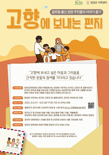 ¡®°íÇâ¿¡ º¸³»´Â ÆíÁö¡¯ ÇÁ·ÎÁ§Æ®´Â 8¿ù 21ÀÏ ÀÏ¿äÀϱîÁö ¿Â¶óÀÎ ±¸±Û Æû ½Åû¼¸¦ ÅëÇØ ½ÅûÇÒ ¼ö ÀÖ´Ù.