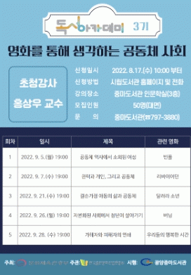 µ¶¼¾ÆÄ«µ¥¹Ì 3±â °¿¬Àº °æ»ó´ëÇб³ ·¯½Ã¾ÆÇаú È«»ó¿ì ±³¼ö°¡ ÃÊû °»ç·Î ³ª¼ ¡®¿µÈ¸¦ ÅëÇØ »ý°¢ÇÏ´Â °øµ¿Ã¼ »çȸ¡¯¶ó´Â ÁÖÁ¦·Î ¿À´Â 9¿ù 5ÀÏ ¿ù¿äÀÏ Àú³á 7½Ã ù ȸ¸¦ ½ÃÀÛÀ¸·Î 9¿ù 7ÀÏ, 9¿ù 21ÀÏ, 9¿ù 26ÀÏ, 9¿ù 28ÀÏ µî 5ȸ¿¡ °ÉÃÄ ±¤¾ç½Ã¹Î°ú ¸¸³¯ ¿¹Á¤ÀÌ´Ù.