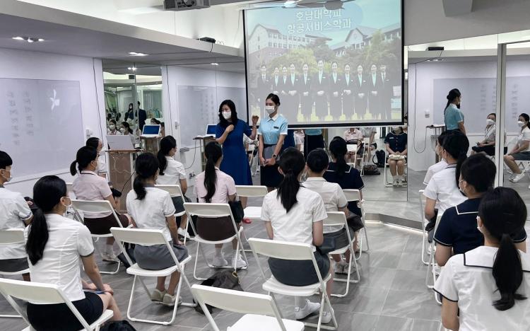 [ÅåÅå´º½º]È£³²´ëÇб³ Ç×°ø¼ºñ½ºÇаú(ÇаúÀå ¹Ú¿¬¿Á)´Â 8¿ù 10ÀÏ ´ë±¸ ¿À¸£´Ù½Â¹«¿ø¾ÆÄ«µ¥¹Ì¿¡¼ Ç×°ø¼ºñ½ºÇаú¿¡ °ü½É ÀÖ´Â °í 3 ÇлýµéÀ» À§ÇØ Çаú ¼Ò°³¿Í ¸ðÀǸéÁ¢À» ½ÃÇàÇϰí 1:1 Çǵå¹é°ú ¸éÁ¢ÄÚĪÀ» ÁøÇàÇß´Ù.