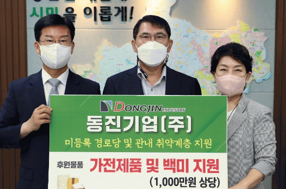 ±¤»ê±¸ °ü°èÀÚ´Â ¡°Äڷγª19 Àå±âÈ·Î ¸ðµÎ°¡ Èûµç »óȲ¿¡¼µµ Áö¿ª »çȸ¸¦ À§ÇØ ³ª´®À» ½ÇÃµÇØ ÁØ µ¿Áø±â¾÷¿¡ °¨»çµå¸°´Ù¡±¸ç ¡°ÀÌ¿ôÀ» ¸ÕÀú »ý°¢ÇÏ´Â µû¶æÇÑ ¸¶À½ÀÌ º¸ÀÌÁö ¾Ê´Â º¹Áö »ç°¢Áö´ë¸¦ ÇØ¼ÒÇÏ´Â µ¥ Å« ÈûÀÌ µÉ °Í¡±À̶ó°í ¸»Çß´Ù.