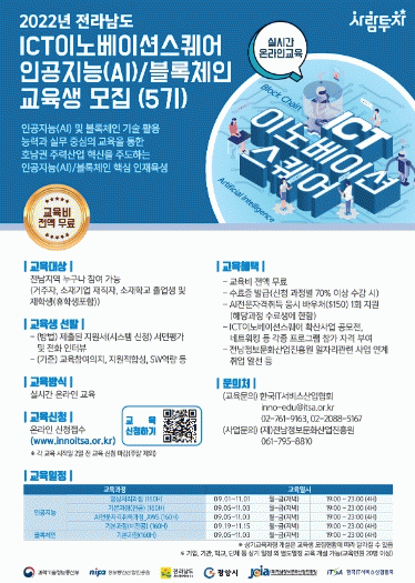 ±³À°ºñ´Â Àü¾× ¹«·áÀ̰í ÀΰøÁö´É(AI)°ú ºí·ÏüÀο¡ °ü½ÉÀÌ ÀÖ´Â Àü³²µµ¹ÎÀÌ¸é ´©±¸³ª Àü³²ICTÀ̳뺣À̼ǽºÄù¾î ´©¸®ÁýÀ» ÅëÇØ ½ÅûÇÒ ¼ö ÀÖÀ¸¸ç, ¼ö·áÀÚ´Â Ãë¾÷ ¿¬°è¸¦ Áö¿øÇÑ´Ù.