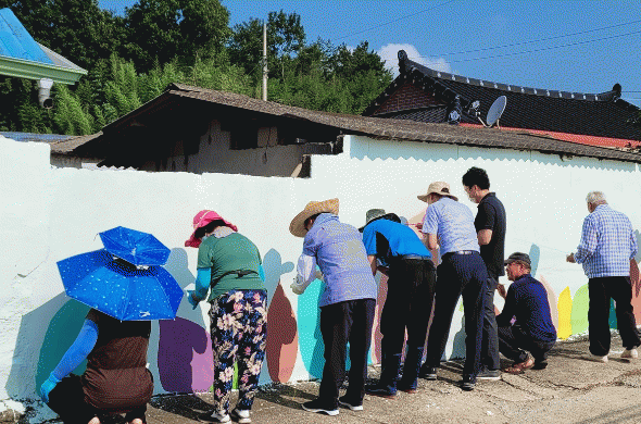 À̹ø º®È ÀÛ¾÷¿¡´Â ¸¶À» Áֹΰú °ø¹«¿ø µî 40¿©¸íÀÌ Âü¿©ÇØ ºû¹Ù·£ ´ãº¶ô ¹ÙÅÁ »öÄ¥°ú ºÎ¾ûÀÌ, ³ª¹µÀÙ µî ¸¶À» ºÐÀ§±â¿Í Á¶È¸¦ ÀÌ·ç´Â º®È ±×¸®±â¿¡ ±¸½½¶¡À» Èê·È´Ù.