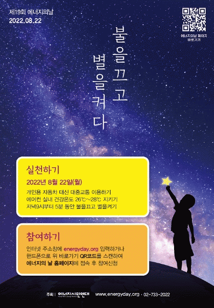 À̹ø ¡®Á¦19ȸ ¿¡³ÊÁöÀÇ ³¯¡¯ Çà»ç´Â ¿¡³ÊÁöÀÇ ³¯À» ±â³äÇϰí, ¿¡³ÊÁö Àý¾à°ú ±âÈÄ À§±â ´ëÀÀÀ» À§ÇÑ ±¹¹ÎÀû °ø°¨´ë¸¦ È®»êÇϰíÀÚ ¡®ºÒÀ» ²ô°í º°À» ÄÑ´Ù¡¯¶ó´Â ÁÖÁ¦·Î ¹ã 9½ÃºÎÅÍ 5ºÐ°£ ¼ÒµîÇà»ç¸¦ ½Ç½ÃÇÑ´Ù. ¶ÇÇÑ, ¿ÀÈÄ 2½ÃºÎÅÍ 1½Ã°£ µ¿¾È ¿¡¾îÄÁ °Ç°¿Âµµ 26¡É¡28¡É Áö۱â Ä·ÆäÀÎÀ» ¹úÀÏ ¿¹Á¤ÀÌ´Ù.