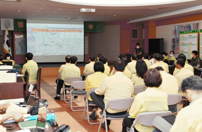 ±ºÀº 22ÀÏ ¿ÀÀü 10½Ã ±ºÃ» À»Áö¿¬½À Á¾ÇÕ»óȲ½Ç¿¡¼ À̺´³ë ´ã¾ç±º¼ö¸¦ Æ÷ÇÔÇÑ ±º °úÀå±Þ ÀÌ»ó °£ºÎ°ø¹«¿ø, °æÂû¼, ¼Ò¹æ¼, ±ººÎ´ë µî À»Áö¿¬½À °ü°èÀÚ 60¿©¸íÀÌ Âü¼®ÇÑ °¡¿îµ¥ À»Áö¿¬½À ÃÖÃÊ »óȲº¸°íȸ¸¦ ÁøÇàÇß´Ù.