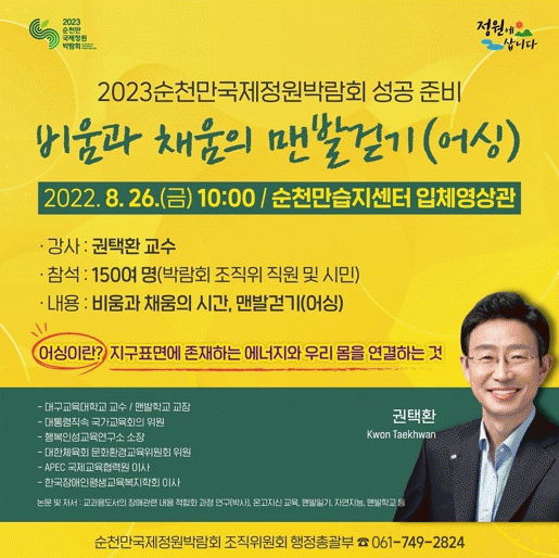 ÀÌ¿¡ ¼øÃµ½Ã´Â Á¤¿ø¹Ú¶÷ȸ ±Ç¿ªÀ¸·Î Æ÷ÇÔµÈ ¼øÃµ¸¸ÀÇ »ýÅÂȯ°æÀ» ¿À°¨À¸·Î Áñ±æ ¼ö ÀÖµµ·Ï ¼øÃµ¸¸ ¶÷»ç¸£±æ 4.5km ±¸°£¿¡ ¡®¼øÃµ¸¸ ¾î½Ì±æ¡¯Á¶¼ºÀ» ÃßÁø ÁßÀÌ´Ù.