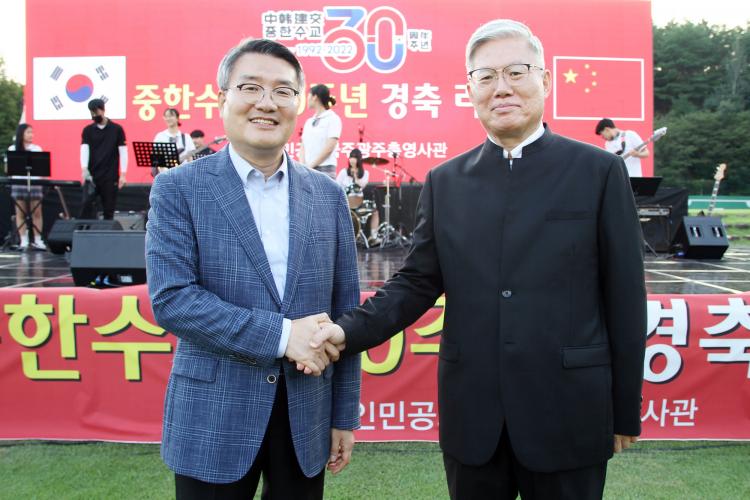 ¹Ú»óö ÃÑÀåÀº À̳¯ Ãà¹è»ç¸¦ ÅëÇØ ¡°ÇÑÁß ¼ö±³ 30ÁÖ³âÀ» ¸Â¾Æ ÁÖ±¤ÁÖÁß±¹ÃÑ¿µ»ç°üÀÇ ±×°£ÀÇ ³ë·Â¿¡ ±íÀÌ °¨»çµå¸°´Ù. È£³²´ëÇб³´Â Áö³ 20¿©³â°£ ÇÑÁß¿ìÈ£±³·ù¸¦ À§ÇÑ ¹Î°£¿Ü±³°üÀÇ ¿ªÇÒ¿¡ ÃÑ·ÂÀ» ±â¿ï¿© ¿Ô´Ù¡±¸ç ¡°¾ÕÀ¸·Îµµ ¾ç±¹ÀÇ ±³À° ±³·ù¿Í ¹®È, °æÁ¦ µî ´Ù¾çÇÑ ¿ìÈ£ ±³·ù°¡ Ȱ¼ºÈ µÇ±â¸¦ ±â´ëÇÑ´Ù¡±°í ¹àÇû´Ù.