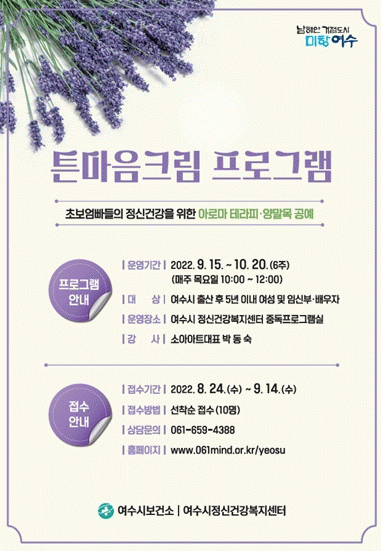 9¿ù 15ÀϺÎÅÍ 10¿ù 20ÀϱîÁö 6ÁÖ°£ ¸ÅÁÖ ¸ñ¿äÀÏ 10½ÃºÎÅÍ 12½Ã±îÁö ¾Æ·Î¸¶Å×¶óÇÇ¿Í ¾ç¸»¸ñ°ø¿¹ ÇÁ·Î±×·¥À¸·Î ÁøÇàµÉ ¿¹Á¤ÀÌ´Ù.
