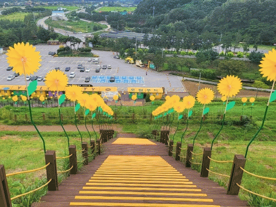 500°³ÀÇ ÇØ¹Ù¶ó±â Á¶Çü¹°ÀÌ À强´ïÀ¸·Î ¿Ã¶ó°¡´Â ³ª¹«°è´Ü ¾çÂʰú ´ï À§¿¡ ¼³Ä¡µÇ¾î, ¹Ù¶÷ÀÌ ºÒ¸é µ¹¾Æ°¡µµ·Ï ¸¸µé¾ú´Ù.