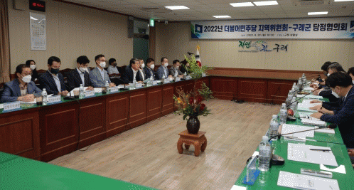 ±¸·Ê±ºÃ» »óȲ½Ç¿¡¼ ¿¸° ´çÁ¤ÇùÀÇȸ¿¡´Â ±è¼øÈ£ ±º¼ö, Áö¿ªÀ§¿øÀå ¼µ¿¿ë ±¹È¸ÀÇ¿ø, À¯½Ã¹® ±ºÀÇÀå, ÀÌÇöâ µµÀÇ¿ø, ´õºÒ¾î¹ÎÁÖ´ç ¼Ò¼Ó ±ºÀÇ¿ø, ÁÖ¿ä ´çÁ÷ÀÚ µî 30¿© ¸íÀÌ Âü¼®ÇÏ¿´´Ù.