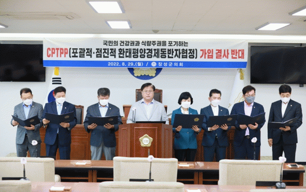±ºÀÇȸ´Â 29ÀÏ º»È¸ÀÇÀå¿¡¼ Àü ÀÇ¿øÀÌ Âü¼®ÇÑ °¡¿îµ¥ CPTPP °¡ÀÔ ¹Ý´ë¸¦ À§ÇÑ ¼º¸í¼¸¦ ¹ßÇ¥Çß´Ù.
