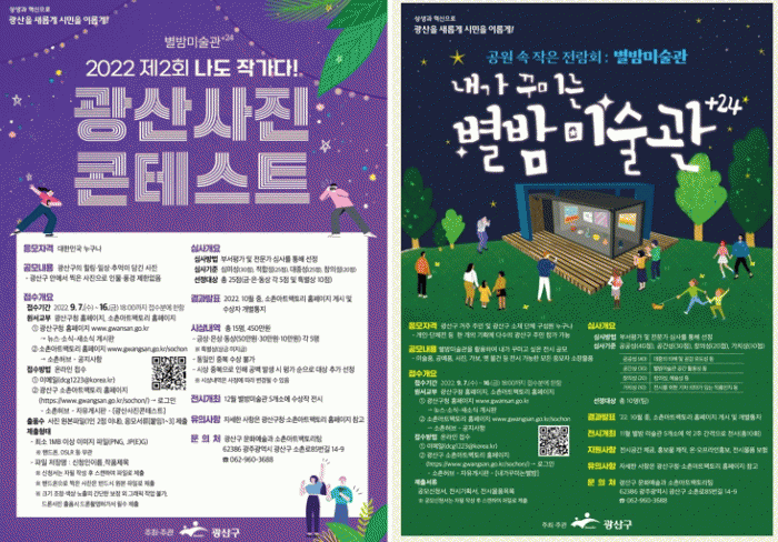 µÎ °ø¸ðÀü ½ÅûÀº 9¿ù7ÀϺÎÅÍ 9¿ù16ÀÏ ¿ÀÈÄ 6½Ã±îÁö À̸ÞÀÏ, ¼ÒÃÌ¾ÆÆ®ÆÑÅ丮 ´©¸®ÁýÀÇ ¡®³»°¡²Ù¹Ì´Âº°¹ã¡¯, ¡®±¤»ê»çÁøÄÜÅ×½ºÆ®¡¯ °Ô½ÃÆÇÀ¸·Î Á¢¼öÇÑ´Ù. ½Åû ¼·ù´Â ±¤»ê±¸ ¹× ¼ÒÃÌ¾ÆÆ®ÆÑÅ丮 ´©¸®Áý¿¡¼ ³»·Á¹ÞÀ» ¼ö ÀÖ´Ù.