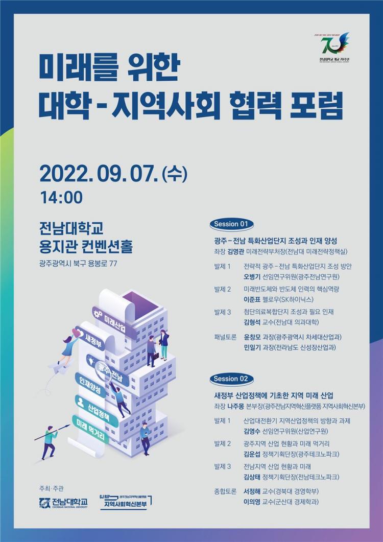 Àü³²´ë¿Í ±¤ÁÖÀü³²Áö¿ªÇõ½ÅÇ÷§ÆûÀº 9¿ù 7ÀÏ ¿ÀÈÄ 2½Ã Çг» ÄÁº¥¼ÇȦ¿¡¼ Áö¿ª±¸ ±¹È¸ÀÇ¿ø, ±¤ÁÖ±¤¿ª½Ã, ±¤ÁÖ±¤¿ª½Ã ±³À°Ã», À¯°ü±â°üÀå°ú ´ëÇ¥, Áö¿ª´ëÇÐ ÃÑÀå µîÀÌ Âü¼®ÇÑ °¡¿îµ¥, ÀåÀå 4½Ã°£¿¡ °ÉÃÄ ¡¸¹Ì·¡¸¦ À§ÇÑ ´ëÇÐ-Áö¿ª»çȸ Çù·Â Æ÷·³¡¹À» ÁøÇàÇÑ´Ù.