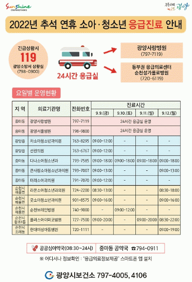 Ãß¼® ¿¬ÈޱⰣ Áß ÀÌ¿ë °¡´ÉÇÑ ÀÇ·á±â°ü°ú ¾à±¹ Á¤º¸´Â ½Ã º¸°Ç¼Ò ȨÆäÀÌÁö¿Í SNS, 129 º¸°Çº¹ÁöÄݼ¾Å͸¦ ÅëÇØ È®ÀÎÇÒ ¼ö ÀÖÀ¸¸ç, ½º¸¶Æ®Æù ¾ÖÇø®ÄÉÀÌ¼Ç ¡®ÀÀ±ÞÀÇ·áÁ¤º¸Á¦°ø¡¯¿¡¼µµ ³» ÁÖº¯ º´¡¤ÀÇ¿ø, ¾à±¹ Á¤º¸¿Í »óȲº° ÀÀ±Þóġ¿ä·É µî ´Ù¾çÇÑ ÀÇ·á Á¤º¸¸¦ È®ÀÎÇÒ ¼ö ÀÖ´Ù.