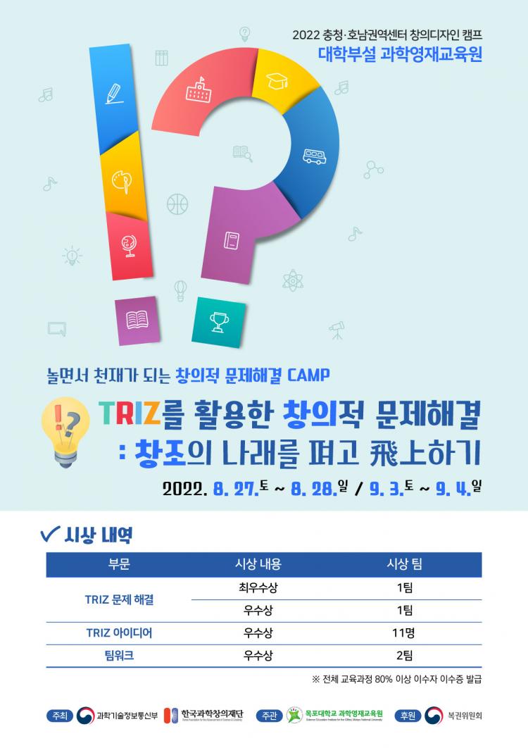 À̹ø Ä·ÇÁ´Â TRIZ¸¦ Ȱ¿ëÇÑ Ã¢ÀÇÀû ¹®Á¦ ÇØ°áÀ» ÁÖÁ¦·Î ´ëÇÐ ºÎ¼³ °úÇпµÀç±³À°¿ø °øµ¿¡¤¿Â¶óÀÎ ¼±±³À°°úÁ¤À» À̼öÇÑ ÃæÃ»¡¤È£³²±Ç¿ª ÃÊ¡¤ÁßÇлý 40¸íÀÌ Âü¿©ÇÏ¿´´Ù.