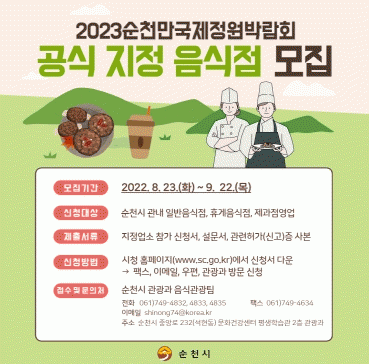 ¼øÃµ½Ã °ü°èÀÚ´Â ¡°¼øÃµÀ» ¹æ¹®ÇÏ´Â °ü±¤°´ÀÌ ¹Ï°í ãÀ» ¼ö ÀÖ´Â ¿ì¼öÇÑ À½½ÄÁ¡À» ¼±Á¤ÇØ 2023¼øÃµ¸¸±¹Á¦Á¤¿ø¹Ú¶÷ȸ¸¦ º¼°Å¸®¿Í ÇÔ²² ¸ÔÀ»°Å¸®µµ dz¼ºÇÑ Çà»ç·Î ¸¸µé°Ú´Ù¡±°í ¸»Çß´Ù.