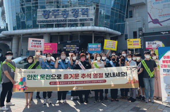 ±¤»ê±¸´Â À̳¯ ¿îÀüÀÚ¸¦ ´ë»óÀ¸·Î À½ÁÖ¡¤°ú¼Ó¡¤Á¹À½¿îÀü ±ÝÁö µî ±³Åë¹ý±Ô Áؼö¸¦ µ¶·ÁÇÏ°í º¸ÇàÀڵ鿡°Ôµµ º¸Çà Áß ½º¸¶Æ®Æù ÀÌ¿ë ±ÝÁö µî ±³Åë¾ÈÀü¼öÄ¢À» È«º¸Çß´Ù.