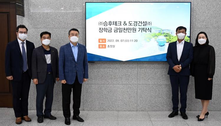 [ÅåÅå´º½º]È£³²´ëÇб³(ÃÑÀå ¹Ú»óö)´Â 9¿ù 7ÀÏ ´ëÇк»ºÎ ÃÑÀå½Ç¿¡¼ ¢ß½ÂÈÄÅ×Å©&µµ°æ°Ç¼³(ÁÖ)·ÎºÎÅÍ ÀåÇÐ±Ý 1,000¸¸ ¿øÀ» ±âŹ¹Þ¾Ò´Ù.