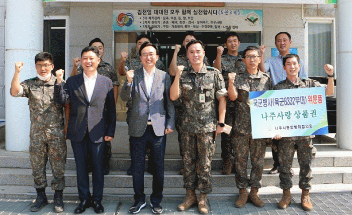 ³ªÁÖ½ÃÅëÇÕ¹æÀ§ÇùÀÇȸ ÀÇÀåÀÎ À±º´Å ½ÃÀåÀº 7ÀÏ Áö¿ª À°±º¡¤°ø±ººÎ´ë 4°÷À» ¹æ¹®ÇØ À§¹®±Ý(³ªÁÖ»ç¶û»óǰ±Ç)À» Àü´ÞÇÏ°í °¢ ºÎ´ë ¾Ö·Î»çÇ×À» ûÃëÇß´Ù.