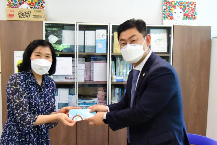 ÀÇȸ ¹æ¹®´ÜÀº Äڷγª19 °¨¿° ¿¹¹æ Â÷¿ø¿¡¼ ´ë¸é Á¢ÃËÀ» ÃÖ¼ÒÈÇϱâ À§ÇØ, ½Ã¼³ ¾ÈÀº µÑ·¯º¸Áö ¾Ê°í ½Ã¼³ ¹Û¿¡¼ °ü°èÀÚµéÀ» ¸¸³ª À§¹®Ç°À» Àü´ÞÇϰí ÀÔ¼ÒÀڵ鿡°Ô ¾ÈºÎ¿Í °Ý·ÁÀÇ ¸»À» ´ë½Å ÀüÇß´Ù.