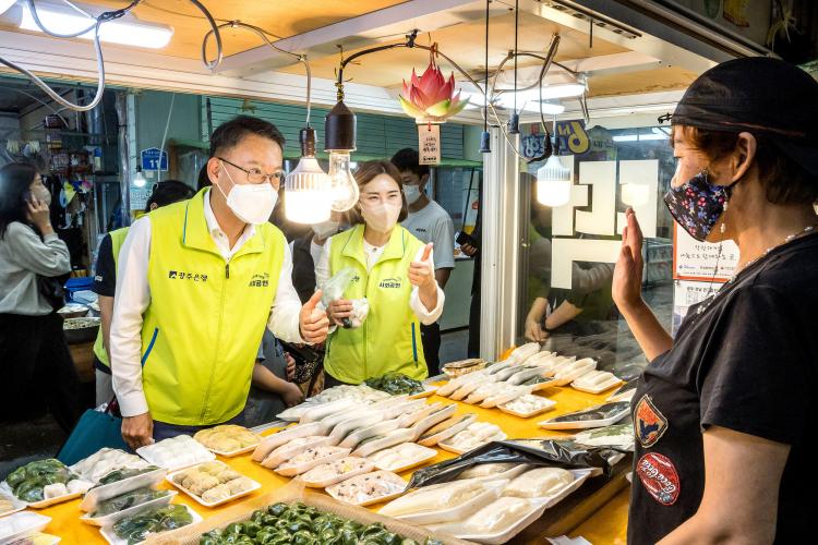 ÀüÅë½ÃÀå À庸±â Çà»ç¿Í ´õºÒ¾î °æ±âħü¿Í °í°´ °¨¼Ò·Î ¾î·Á¿òÀ» °Þ°í ÀÖ´Â ½ÃÀå »óÀεéÀ» ¸¸³ª ¾Ö·Î»çÇ×À» ûÃëÇÑ ¼ÛÁ¾¿í ±¤ÁÖÀºÇàÀåÀº ¡°Äڷγª19 ¿©ÆÄ·Î ¾î´À ¶§º¸´Ù Èûµç ½Ã±â¸¦ º¸³»°í ÀÖ´Â ÀüÅë½ÃÀåÀÌ Áö¿ª¹ÎµéÀÇ °ü½ÉÀ¸·Î Ȱ·ÂÀ» µÇã±â ¹Ù¶ó¸ç À̹ø Çà»ç¸¦ ÁغñÇß´Ù¡±¸ç, ¡°±¤ÁÖÀºÇàÀº Áö¿ª°æÁ¦ Ȱ¼ºÈ¿Í ³ª´®¹®È È®»êÀ» À§ÇØ Áö¼ÓÀûÀÎ »çȸ°øÇåȰµ¿°ú ±ÝÀ¶Áö¿øÀ» ÆîÃÄ ±¤ÁÖ¡¤Àü³² ´ëÇ¥ÀºÇàÀÇ ¿ªÇÒ¿¡ ÃÖ¼±À» ´ÙÇϰڴ١±°í ¸»Çß´Ù.