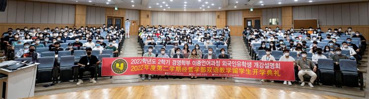 2022-2Çбâ ÀÌÁß¾ð¾î°úÁ¤ ½ÅÆíÀÔ Çкλý 204¸í, ´ëÇпø»ý 49¸íÀÌ Âü¼®ÇÑ À̹ø °³° ¼³¸íȸ¿¡´Â °æ¿µÇаú ÀÌÁß¾ð¾î°úÁ¤ ±³¼öÁøÀÇ Çлç ÀÏÁ¤ ¼Ò°³¿Í °Ý·Á»ç, ¿Ü±¹ÀÎ À¯Çлý ȸÀå´ÜÀÇ ±â¼÷»ç ¾ÈÀü±³À°, º¸À̽ºÇÇ½Ì ¿¹¹æ ¾È³» µîÀ» ÁøÇàÇßÀ¸¸ç, Âü°¡ Çлýµé¿¡°Ô´Â ÁÖ±¤ÁÖÁß±¹ÃÑ¿µ»ç°ü(ÃÑ¿µ»ç Àåû°)¿¡¼ Ãß¼®À» ¸Â¾Æ ¼±¹°ÇÑ ¹æ¿ª ¿ëǰÀ» Àü´ÞÇß´Ù.