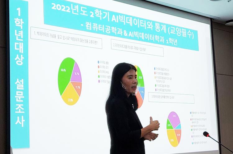 AI±³À°Çõ½ÅÀ§¿øÀåÀÎ ¹é¶õ ±³¼ö´Â À̳¯ ¹ßǥȸ¿¡¼ 2021³â 7¿ù~11¿ù 1Â÷ ±³¼ö¹ý¿¬±¸È¸ÀÇ ¼º°ú¿Í 2021³â 12¿ù~2022³â 2¿ù±îÁöÀÇ AI ±³À° ±¸Çö¹æ¾È ¿¬±¸±â¹Ý ¼º°ú¸¦ ÅëÇØ °³¹ßµÈ È£³²´ëÇб³ÀÇ ºê·£µå ±³À°¸ðµ¨À» °ø°³Çß´Ù. ¶ÇÇÑ ÀΰøÁö´É Çٽɿª·® 6C, ±³À°¼º°ú µµÃâ °úÁ¤ ¹× ¹Ì·¡±â¼úÀ» Á¶¸íÇÒ ¼ö ÀÖ´Â DQ(µðÁöÅи®ÅÍ·¯½Ã Áö¼ö)¸¦ ÅëÇØ Áö¼ÓÀûÀ¸·Î ¿¬±¸Çؿ Áß°£ ¼º°ú¸¦ Âü¼®ÀÚµé°ú °øÀ¯Çß´Ù.