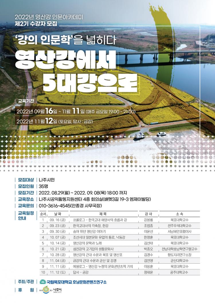 9¿ù 16ÀÏ¿¡´Â °³°½Ä¿¡ ÀÌ¾î °ºÀ·æ ¼ÒÀåÀÌ ¡®Çѱ¹ °í´ë ÇØ¾ç»çÀÇ È帧°ú °¡¯À̶ó´Â ÁÖÁ¦·Î °ÁÂÀÇ Å×ÀÌÇÁ¸¦ ²÷°í, 9¿ù 23ÀÏ ¿ì¼®´ë Á¶¹ýÁ¾ ±³¼öÀÇ ¡®Çѱ¹ °í´ë»çÀÇ °¢ÃàÀå, ÇѰ¡¯, 9¿ù 30ÀÏ (»ç)¼³²ÇØ¾ÈÆ÷·³ ÀÌÀ±¼± ÀÌ»çÀåÀÇ ¡®¼þ¾î ¶Ù´ø ¿µ»ê° À̾߱⡯, 10¿ù 7ÀÏ ¸ñÆ÷´ë ÇÑÁ¤ÈÆ ±³¼öÀÇ ¡®Áß¼¼ ¹®¹° ±³·ùÀÇ Åë·Î, ³«µ¿°¡¯, 10¿ù 14ÀÏ ¸ñÆ÷´ë ±è¼±Å ±³¼öÀÇ ¡®¿µ»ê°ÀÇ ¹®Çаú ³ë·¡¡¯, 10¿ù 21ÀÏ Àü³²´ë È£³²Çבּ¸¿ø ¹ÚÁ¾¿À ±³¼öÀÇ ¡®¼¶Áø°ÀÇ °í±âÀâÀÌ »ýȰ¹®È»ç¡¯, 10¿ù 28ÀÏ (»ç)ÇâÅäÁö¸®¿¬±¸¼Ò ±è°æ¼ö ¼ÒÀåÀÇ ¡®¿µ»ê° ¼ö¿î¡¯, 11¿ù 4ÀÏ ±º»ê´ë ±è¹Î¿µ ±³¼öÀÇ ¡®±Ý°ÀÇ ±Ù´ë ¼ö¿î°ú ±º»ê ¹× °°æ¡¯, 11¿ù 11ÀÏ ¸ñÆ÷´ë ÀÌÃ¢ÈÆ ±³¼öÀÇ ¡®¿µ»ê° ´©Á¤ÀÇ ¹®ÈÄÜÅÙÃ÷Àû °¡Ä¡¡¯·Î °Á°¡ À̾îÁø´Ù.