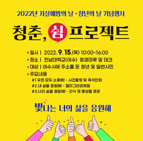 ¡®Àڻ쿹¹æÀÇ ³¯¡¯Àº ¼¼°èº¸°Ç±â±¸(WHO)¿Í ±¹Á¦Àڻ쿹¹æÇùȸ(IASP)¿¡¼ »ý¸íÀÇ ¼ÒÁßÇÔ°ú ÀÚ»ì ¹®Á¦ÀÇ ½É°¢¼ºÀ» ¾Ë¸®°íÀÚ ÁöÁ¤ÇÑ ³¯(9¿ù 10ÀÏ)·Î ¿ì¸®³ª¶ó¿¡¼´Â 2011³âºÎÅÍ ±â³äÇϰí ÀÖ´Ù.