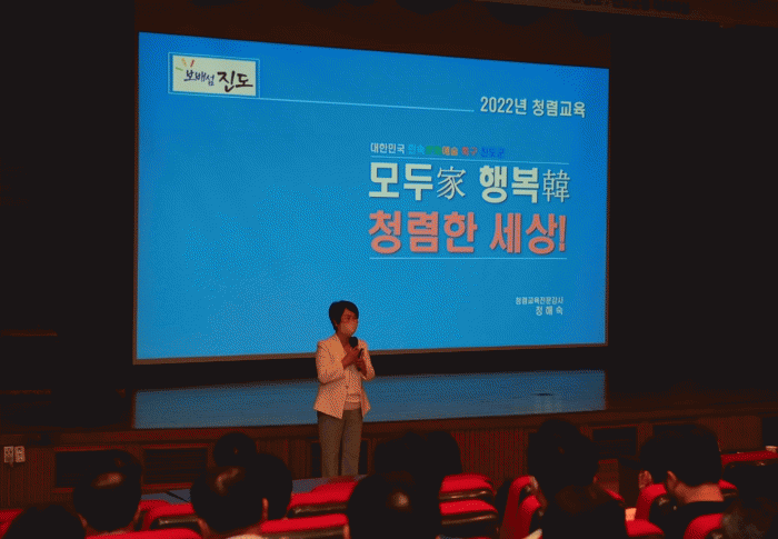Áö³ 13ÀÏ Áøµµ±ºÃ» ´ëȸÀǽǿ¡¼ ¡®¸ðµÎ°¡ ÇູÇÑ Ã»·ÅÇÑ ¼¼»ó¡¯À̶ó´Â ÁÖÁ¦·Î ¹Î¼± 8±â °øÁ÷ÀÚ°¡ °®Ãß¾î¾ß ÇÒ ¹ÝºÎÆÐ¡¤Ã»·Å°ú ¿Ã¹Ù¸¥ °¡Ä¡°üÀ» Á¤¸³Çϱâ À§ÇÑ ±³À°À» Á¤Çؼ÷ Àü¹® °»ç°¡ ÁøÇàÇß´Ù.