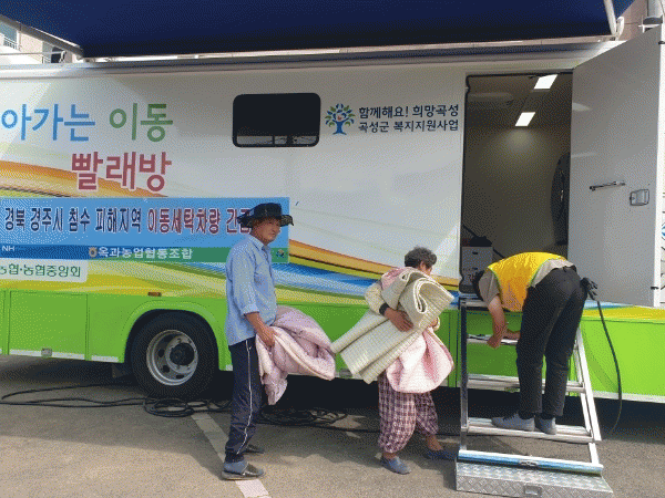 °î¼º ±º¹ÎÀ» À§ÇÑ À̵¿ »¡·¡ Â÷·®ÀÌÁö¸¸ 13ÀÏ¿¡´Â ÅÂdz ÇÇÇØ Áö¿ªÀÎ °æÁÖ·Î ÇâÇß´Ù. 14ÀϱîÁö ÀÌÆ²°£ ¼¼Å¹±â °íÀå, Àü±â ´©ÀüÀ¸·Î ¼¼Å¹À» ¸øÇÏ´Â ÅÂdz ÇÇÇØ ÁֹεéÀÇ À̺Ұú ¿Ê°¡Áö¸¦ ¼¼Å¹ÇØ ÁÖ±â À§Çؼ´Ù. »¡·¡ Â÷·®Àº °î¼º±º ¿Á°ú³óÇù¿¡¼ Áö¿øÇßÀ¸¸ç ¼¼Å¹±â(24kg) 6´ë, °ÇÁ¶±â(17kg) 3´ë°¡ ¼³Ä¡µÇ¾î ÀÖ´Ù. Â÷·®¿¡´Â ÀÚ¿øºÀ»çÀÚ 2¸íÀÌ µ¿ÇàÇØ »¡·¡ ¼ö°Å¿Í ¹è´ÞÀ» µ½°í ÀÖ´Ù.