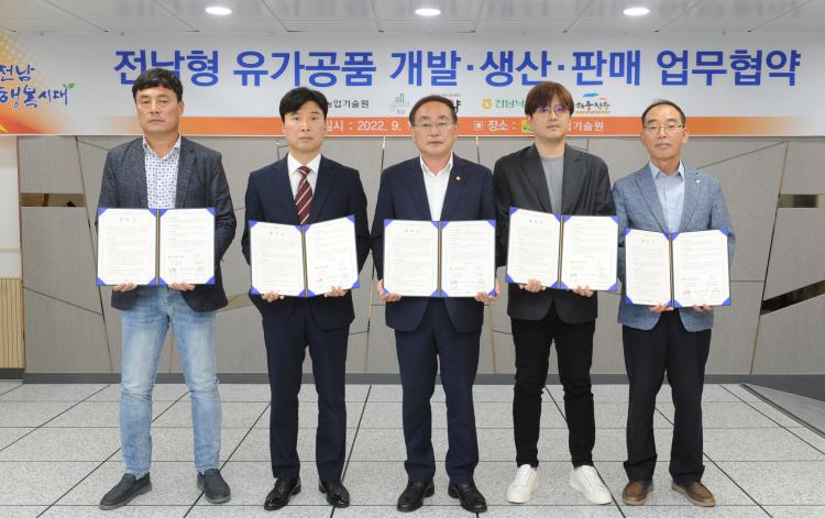 ÀÌ¿¡ Àü³²³ó¾÷±â¼ú¿øÀº Àü³² ³óÃà»ê¹°À» ÀÌ¿ëÇÑ °¡°øÇ°À» °³¹ß¡¤ÆÇ¸ÅÇØ, »õ·Î¿î ºÎ°¡°¡Ä¡¸¦ âÃâÇÏ°í ½Äǰ°¡°ø»ê¾÷ Ȱ¼ºÈ¸¦ À§ÇØ À̹ø ÀÚ¸®¸¦ ¸¶·ÃÇß´Ù°í µ¡ºÙ¿´´Ù.