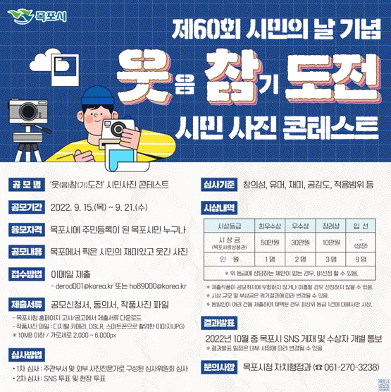 ¸ñÆ÷½Ã¹ÎÀ̶ó¸é ´©±¸³ª ¿À´Â 21ÀϱîÁö Âü¿©ÇÒ ¼ö ÀÖÀ¸¸ç ¸ñÆ÷¿¡¼ ÃÔ¿µÇÑ ½Ã¹ÎÀÇ Àç¹ÌÀÖ°í À¯ÄèÇÑ ¸ð½ÀÀÌ ´ã±ä »çÁøÀ» À̸ÞÀÏÀ» ÅëÇØ Á¢¼öÇÏ¸é µÈ´Ù.