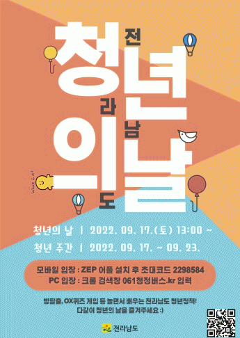 Âü¿©¸¦ ¹Ù¶ó´Â û³âÀº ÀÎÅÍ³Ý ÁÖ¼Òâ¿¡ ¡®061ûÁ¤¹ö½º.kr¡¯À» ÀÔ·ÂÇϰųª È«º¸ Æ÷½ºÅÍ ÇÏ´Ü¿¡ ÀÖ´Â Á¤º¸¹«´Ì(QR)Äڵ带 ÀÌ¿ëÇØ ¡®Àü¶ó³²µµ û³â¼¾ÅÍ ¸ÞŸ¹ö½º¡¯¿¡ Á¢¼ÓÇÏ¸é µÈ´Ù.
