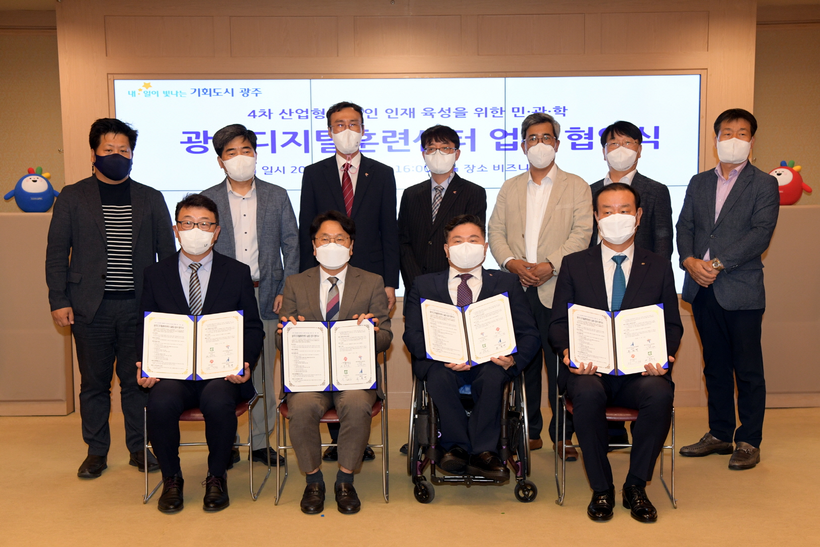 ±¤ÁÖ±¤¿ª½Ã¿Í Çѱ¹Àå¾ÖÀΰí¿ë°ø´Ü, Àü³²´ëÇб³, ÀΰøÁö´É»êÇп¬Çùȸ´Â 15ÀÏ ¿ÀÈÄ 4Â÷ »ê¾÷Çü Àå¾ÖÀÎ µðÁöÅÐ ÀÎÀç À°¼ºÀ» À§ÇÑ Çù¾àÀ» ¸Î¾ú´Ù. Çù¾à½Ä¿¡´Â °±âÁ¤ ±¤ÁÖ±¤¿ª½ÃÀå, Á¶ÇâÇö Çѱ¹Àå¾ÖÀΰí¿ë°ø´Ü ÀÌ»çÀå, ±èÀºÀÏ Àü³²´ëÇб³ ºÎÃÑÀå, ÃÖÇöÅà ÀΰøÁö´É»êÇп¬ÇùȸÀåÀÌ Âü¼®Çß´Ù.