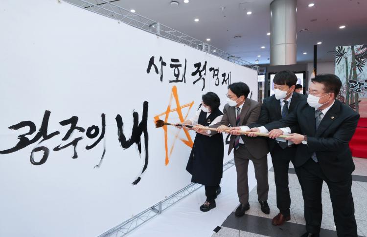 °³¸·½ÄÀº °±âÁ¤ ±¤ÁÖ±¤¿ª½ÃÀåÀÇ È¯¿µ»ç ¹× »çȸÀû±â¾÷ ·çÆ®¸ÓÁöÀÇ ±â³ä°ø¿¬, »çȸÀû°æÁ¦ À¯°øÀÚ ¹× ¿ì¼ö »çȸÀû°æÁ¦ ±â¾÷°¡ ǥâ, º×±Û¾¾ ÆÛÆ÷¸Õ½º µî ¼øÀ¸·Î ÁøÇàµÆ´Ù. ƯÈ÷ ° ½ÃÀåÀ» ºñ·ÔÇÑ Âü¼®ÀÚµéÀº º×±Û¾¾ ÆÛÆ÷¸Õ½º¿¡¼ ¡®»çȸÀû°æÁ¦, ±¤ÁÖÀÇ ³»¡ÙÀÏÀ» ¿´Ù¡¯´Â ¸Þ½ÃÁö¸¦ ÀüÇÏ°í »çȸÀû°æÁ¦ Ȱ¼ºÈ¸¦ À§ÇÑ °øµ¿ÀÇ ³ë·ÂÀ» ¾à¼ÓÇß´Ù.
