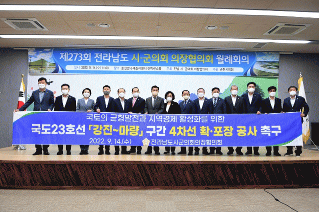 Áö³ 14ÀÏ ¼øÃµ¿¡¼ °³ÃÖµÈ Á¦273ȸ Àü³²½Ã±ºÀÇÀåÇùÀÇȸ¿¡¼ ±èº¸¹Ì ÀÇÀåÀÌ ´ëÇ¥ ¹ßÀÇÇÑ ¡®±¹µµ 23È£¼± °Áø~¸¶·®°£ 4Â÷¼± È® Æ÷Àå Ã˱¸ °ÇÀǾȡ¯ÀÌ Àü¿ø ¸¸ÀåÀÏÄ¡·Î Åë°úÇϸç, ÇùÀÇȸ ¾È°ÇÀ¸·Î äÅõƴÙ.