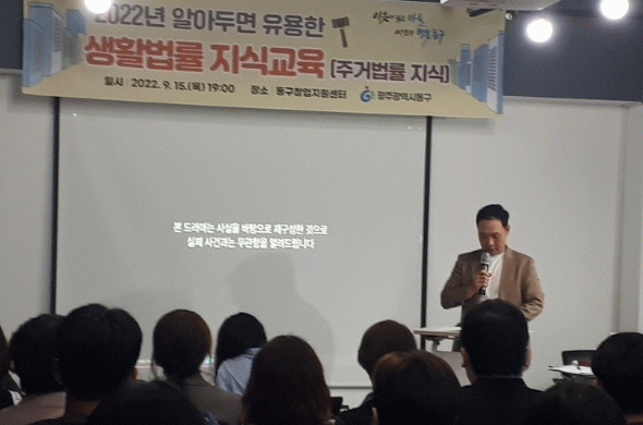 [ÅåÅå´º½º]±¤ÁÖ µ¿±¸´Â Áö³­ 15ÀÏ ÁֹεéÀÌ ÀÏ»ó»ýȰ ¼Ó¿¡¼­ °ÞÀ» ¼ö ÀÖ´Â ¾î·Æ°í º¹ÀâÇÑ ¹ý·ü¹®Á¦¸¦ ÁֹΠ´«³ôÀÌ¿¡ ¸ÂÃç ¼Õ½±°Ô ¾Ë·ÁÁÖ´Â ¡®¾Ë¾ÆµÎ¸é À¯¿ëÇÑ »ýȰ¹ý·ü Áö½Ä Á¦3ꡝÀ¸·Î ÁְŹý·ü ±³À°À» ½Ç½ÃÇß´Ù°í ¹àÇû´Ù.