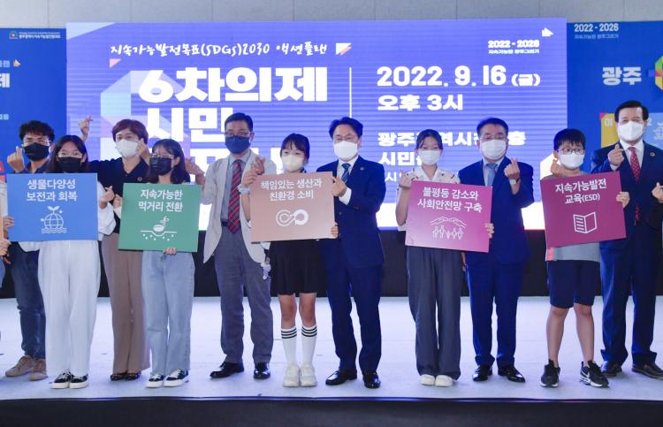 ±¤ÁÖ½Ã¿Í ±¤ÁÖÁö¼Ó°¡´É¹ßÀüÇùÀÇȸ´Â 16ÀÏ ½Ãû ½Ã¹ÎȦ¿¡¼ ¡®±¤ÁÖ 6Â÷ÀÇÁ¦ ¼±Æ÷½Ä¡¯À» °³ÃÖÇϰí 6´ë ÇÙ½ÉÀÇÁ¦¿Í 2´ë °øÅ롤Ưº°ÀÇÁ¦¸¦ ¹ßÇ¥Çß´Ù.