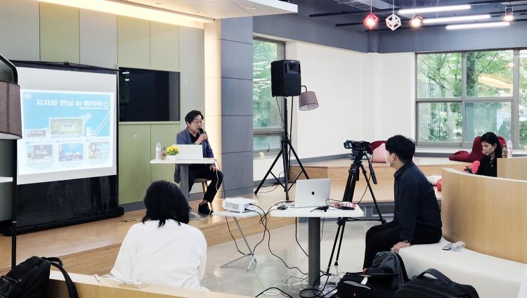 È£³²´ë ½ºÅ͵ðÄ«Æä ¡®È£½ºÄ«¡¯ ÇöÀå°ú ¸ÞŸ¹ö½º 3D Ç÷§ÆûÀ» ÅëÇØ ³ªÁÖ°ø°øµµ¼°ü¿¡¼ µ¿½Ã¿¡ ÁøÇàµÈ ¡®ÀúÀÚ¿Í ¸¸³² in ¸ÞŸ¹ö½º¡¯ ÇÁ·Î±×·¥Àº 16ÀÏ ¿ÀÈÄ 2½Ã ±â·ÏÇÐÀÚÀÎ ¸íÁö´ëÇб³ ±èÀÍÇÑ ±³¼öÀÇ ¡®µ¶¼¸¦ ÀßÇÏ´Â ¹ý¡¯, ¿ÀÈÄ 4½Ã ±³À°°øÇÐÀÚ À̼º¾Æ ±³¼öÀÇ ¡®¿µÈ¼Ó¿¡¼ ¸¸³ª´Â ÇнÀ¹ý¡¯À» ÁÖÁ¦°¿¬ÀÌ ÁøÇàµÆ´Ù. À̾î 17ÀÏ ¿ÀÀü 11½Ã¿¡´Â ¹é¶õ ±³¼ö°¡ ¡®Ã¥¿¡¼ ¸¸³ª´Â ÀΰøÁö´É ½±°Ô Àб⡯¸¦ ÁÖÁ¦·Î ¼ö½Ä ¾ø´Â ÇÔ¼ö·ÎºÎÅÍ ÀΰøÁö´ÉÀÇ ¿ø¸®¸¦ ¼Ò°³ÇÏ´Â ½Ã°£À» °¡Á³´Ù.