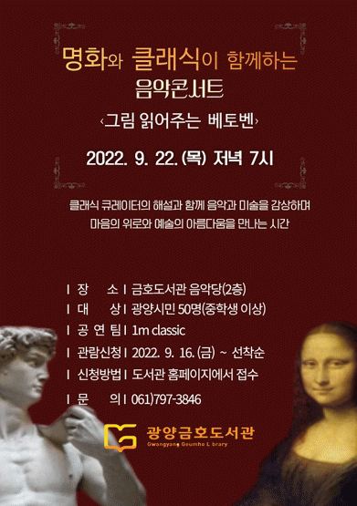 À̹ø °ø¿¬Àº 9¿ù µ¶¼ÀÇ ´ÞÀ» ¸Â¾Æ, ¹Ì¼ú Àü¹®°¡ÀÇ ÇØ¼³°ú Ŭ·¡½Ä ¾Ó»óºí ÆÀÀÇ Çù¿¬À¸·Î ¸íÈ¿Í Å¬·¡½ÄÀÌ ÇÔ²² ¾î¿ì·¯Áö´Â ¼öÁØ ³ôÀº °ø¿¬À» ¼±º¸À̰íÀÚ ±âȹµÆ´Ù.